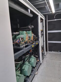 Also included in our project scope was the installation of the pipework from the bottom to top of the building (no mean feat!), and power and data installation to all refrigeration, cold rooms and cabinets in the food hall and customer café.